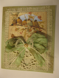 4.) Cut a piece of burlap just slightly smaller than the front of the card.