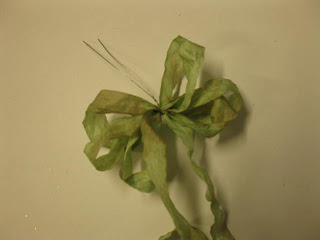 8.) Spray some light brown mist in the palm of your hand, and the rub the ribbon in between your hands.