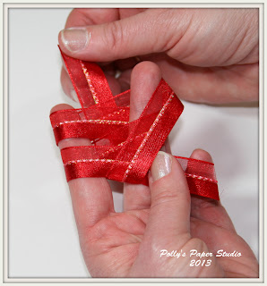 If you'd like to see the bows on my finished project please click HERE. Any Really Reasonable Ribbon trim will work great...as long as it's not too wide and thick. I used my favorite Scor-Tape to attach the bows to my project.
