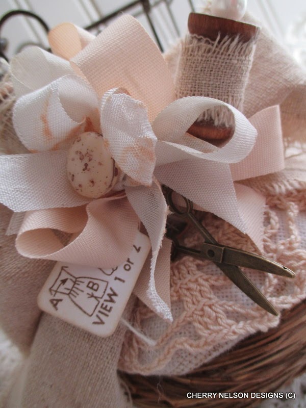 white seam binding. I inked here and there for some aging. I added a couple of little eggs to the top and was done! I love the soft neutrals and rustic chic quality to this! Hope you enjoy, Cherry