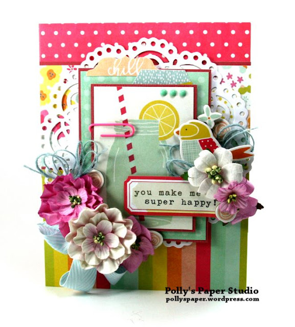 I can almost feel the salt spray on my face and hear the crashing waves on the shore. I used Webster's Pages Yacht Club papers to make this card. It's an oldie but a goodie from my stash. I fussy cut the lighthouse, flowers and ship's wheel from the paper collection, inked all the edges and then layered them with foam dots to create lots of dimension.