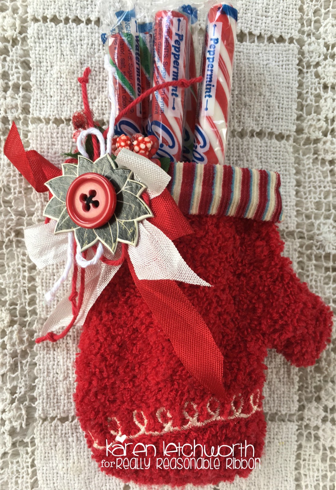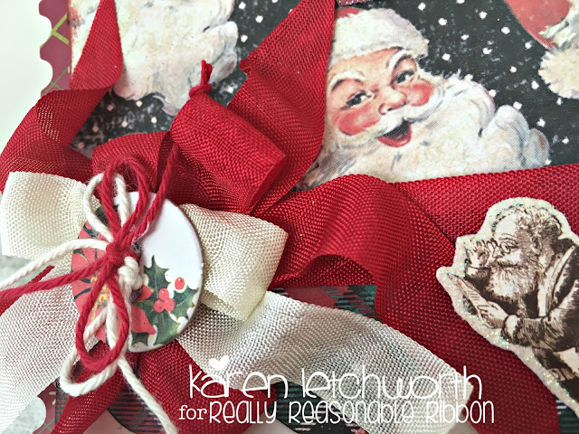 Hello, sweet blog friends! It's Karen Letchworth here today, and I wanted to share a couple of sweet Christmas cards I created using some of my favorite trims from Really Reasonable Ribbon, along with some of their new Embellishments. There are SO many sweet touches available in the Really Reasonable Ribbon Shop to help adorn your cards and projects. Check this out!