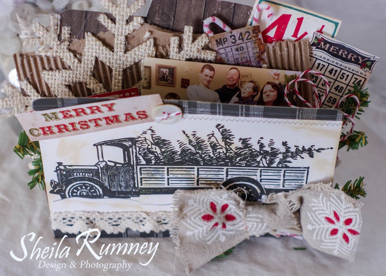 Both of my cards for today were created using patterned papers, stickers and ephemera from Carta Bella's new Christmas Delivery line. This super sweet Christmas line is just filled with the sweetest designs, and Really Reasonable Ribbon helped me finish them off beautifully!