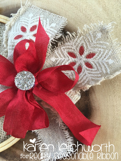 My bow was created on my Bow-it-All V3.0 using Silver and Gold Glitz Ribbon from Really Reasonable Ribbon. I used a 14mm Flower Shaped Acrylic Rhinestone Embellishment in the center of the bow.