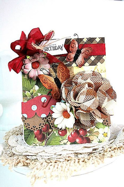 Last but not least......this card is my favorite of the batch because that image just yells Christmas with the gloves and cocoa and candy cane. Those gorgeous flowers coordinate so perfectly and the leaves bring a welcome pop of green.