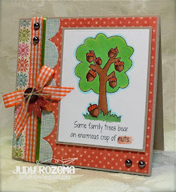 One of the new October releases at Whimsie Doodles is this adorable digital image called Family Nuts. I printed it out on X-Press Copic Blending cardstock and then colored in using Copic markers. I added some sparkle to the acorns with my Spica Glitter pens, but of course the photo doesn't want to show you that!