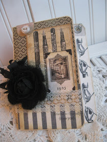 Hi there. Cherry here today to share a card made for Really Reasonable Ribbon. This card reminds me of when I was in first grade. I took great pains to practice my handwriting. I was so proud of myself (I added curly cues). Even then I had to add details. Today's generation doesn't even know the meaning of penmanship. My grandmother had gorgeous handwriting. I imagine her being the lady on the front of this card. Sitting, practicing her writing. I used sepia tones and creams...and added black for a bit of drama. I used black seam binding and my very favorite lace ever the charlotte lace. Well it is getting nearer to midnight. I suppose I should try to get some shut-eye. Hope you enjoy! hugs, cherry